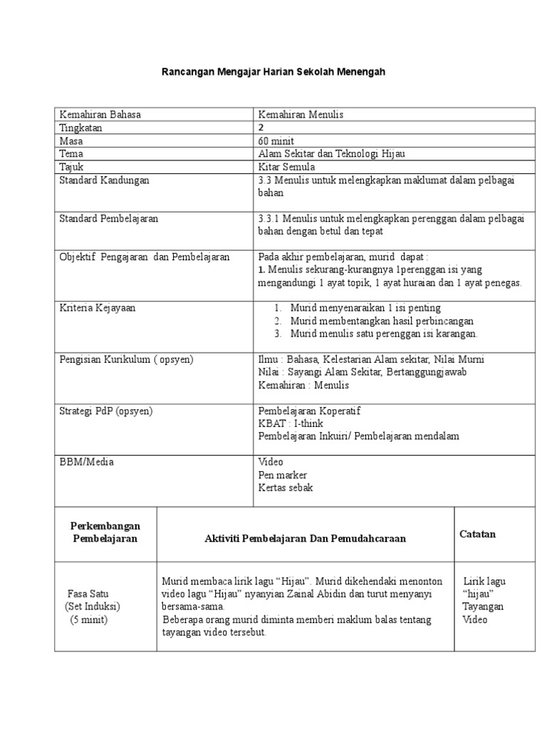 Rancangan Pengajaran Harian Tingkatan Dua Karangan Pdf